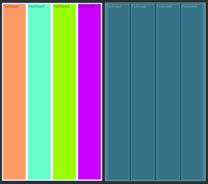 Linear(선의, 선형의)의 뜻처럼 가로나 세로 방향으로 일열로 나열 할 때 사용합니다. 뷰의 위치를 지정 하지 않아도 중첩되지 않고 자동으로 나열됩니다.