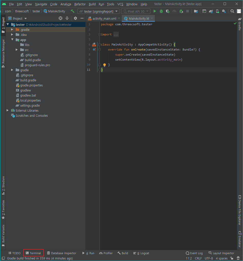 터미널을 사용하여 간단하게 릴리즈 버전의 인증서 보는 방법입니다. 아래쪽 터미널을 열어줍니다.