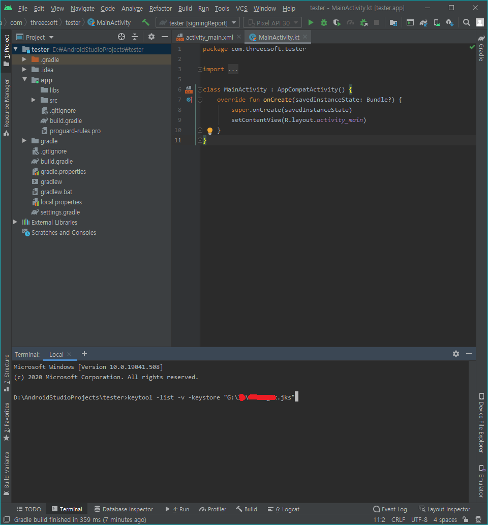 .jks파일은 앱을 빌드 할 때 생성 하였던 키입니다. 키의 위치에 맞게 키툴을 입력하여 주면됩니다.