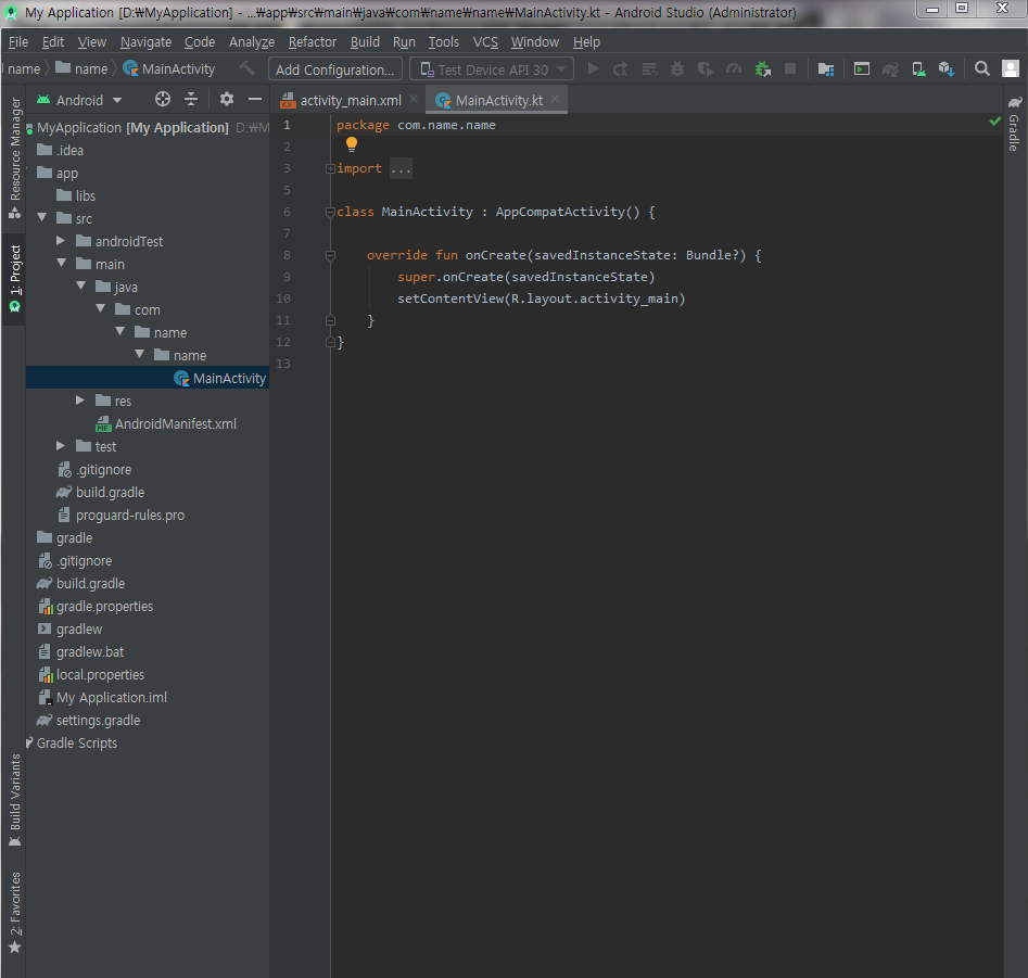 이제 안드로이드 스튜디오 프로젝트 생성이 완료되었습니다.